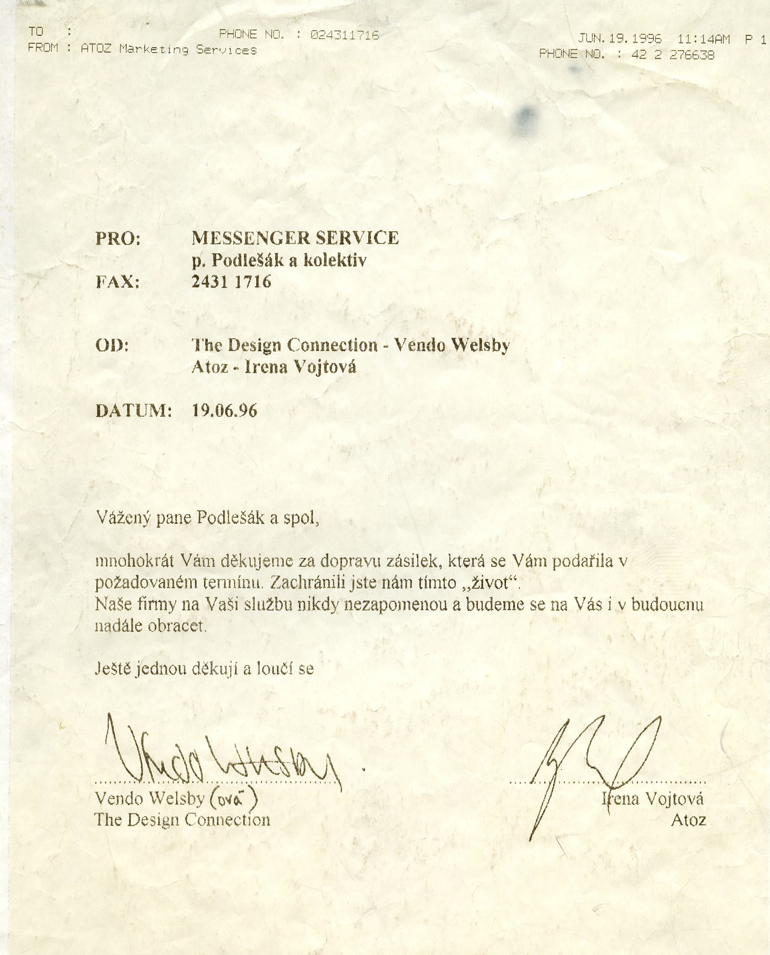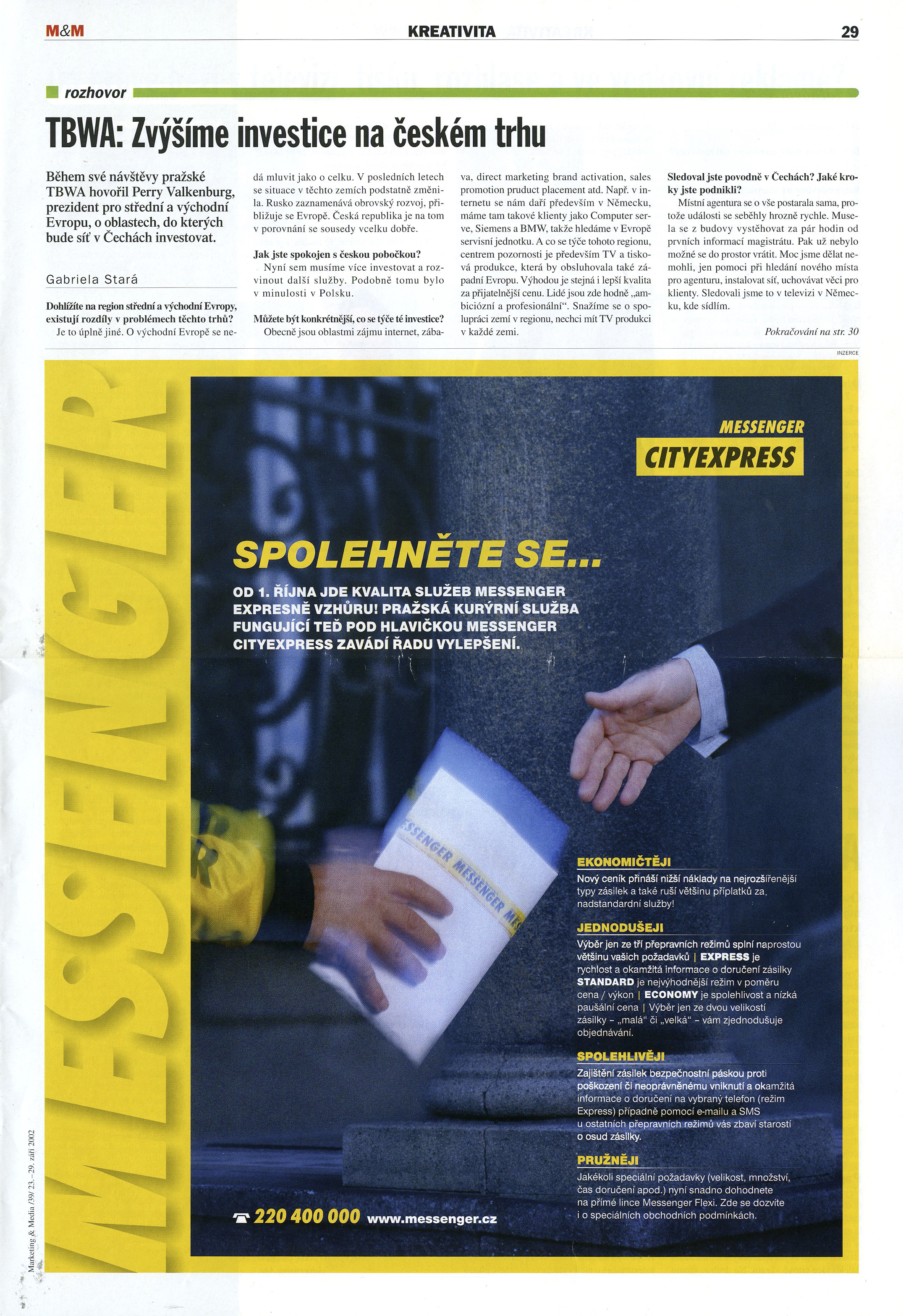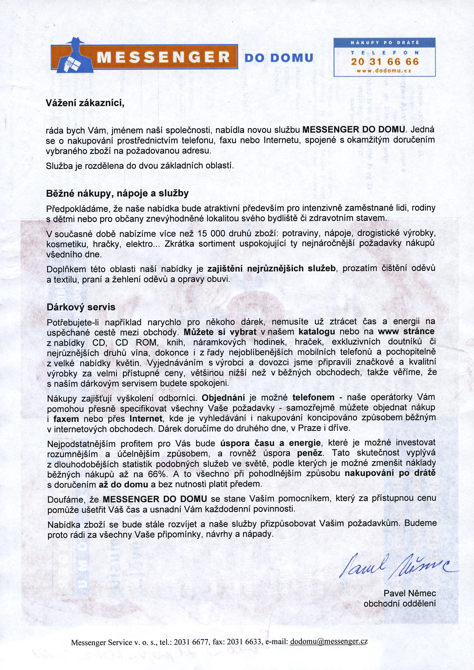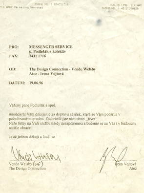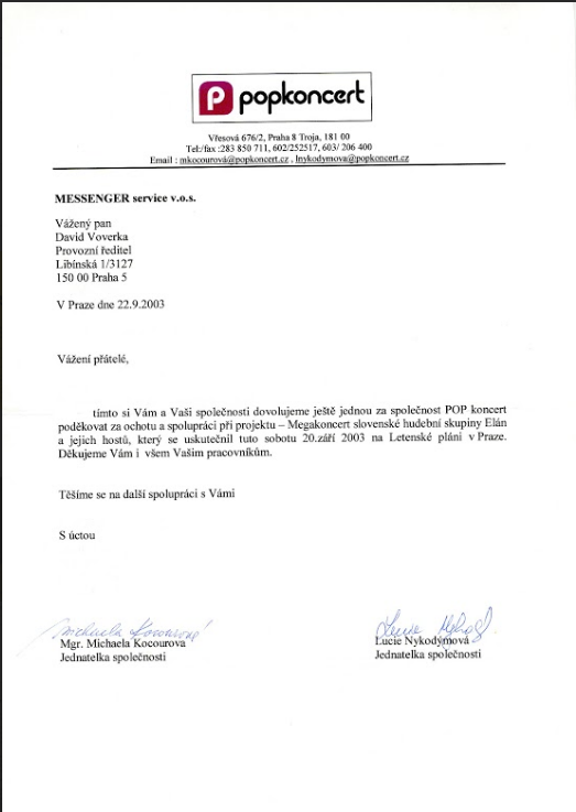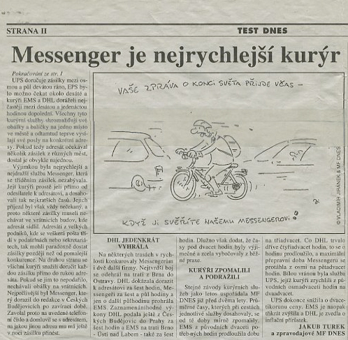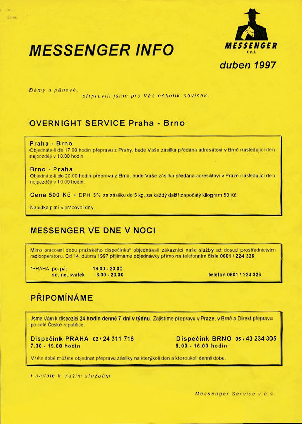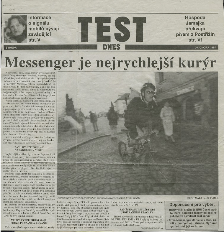 Děkujeme, že jste s námi. Ať už zásilky objednáváte, platíte naše faktury, ladíte s námi smlouvu nebo jste v recepci a bavíte se s našimi kurýry. A pokud se tento dopis dostal do rukou někoho, kdo s Messengerem ještě nejezdí, tak na co čekáte? Snad jsme za to čtvrtstoletí prokázali, že se v přepravě vyznáme.